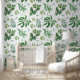 Ein frisches, friedliches und ruhiges, nahtloses, sich wiederholendes Muster, das sich durch die grünen Blätter in einem Waldgrün auf Weiß auszeichnet, das für jede Fläche oder Umgebung, die man will, eine Touch der Natur hinzuzufügen, ideal ist. Transformieren Sie Ihre Zuhause oder Ihr Büro sofort mit diesem einfach zu bedienenden Schalen- und Stangenwandgemälde, das in einer glatten und strukturierten Oberfläche erhältlich ist. Ideal für einen Wellness-Center, eine Waldhütte oder einen Bungalow oder um Ihrem Raum eine zeitlose Eleganz hinzuzufügen.