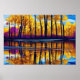 Blattgelbes Orange Lila Lake Reflection Poster