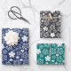 Blau, Aquamarin, Schwarz & Weiß Star & Snowflake M Geschenkpapier Set