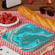 Teller aus weißem, aquamarinem und türkisfarbenem Marmor.