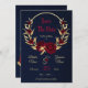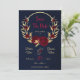 Romantische bordeauxrote Blume und goldene Blätter botanische Kranz-Blaue Save the Date Einladung