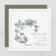 Dieses schicke Design besticht durch eine Aquarellfärbung mit blauen Blumengrün und einer individuellen Typografie.