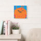 Blau-blaue und blassorangefarbene Gestaltung Quadratische Wanduhr