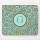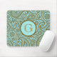 Blau & braun Paisley Retro Muster-Monogramm Mousepad