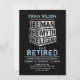 "Der Mensch der Mythos der Legende hat sich zurückgezogen" Typografie-Design in schwarz-weiß, personalisiert Ihren eigenen Namen und Party Details. Große Einladungen in den Ruhestand.