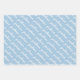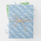 Diese Geschenkpackung hat drei verschiedene Farboptionen: hellblauer Hintergrund mit einem sich wiederholenden Namen in weißem, weißem Hintergrund mit einem sich wiederholenden Namen in hellblau, hellgrüner Hintergrund mit einem sich wiederholenden Namen in weiß.
