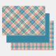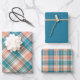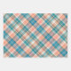 Blau, dunkel Aquamarin, Lachs und Weiß Kariert Geschenkpapier Set