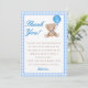 "Zeigen Sie Ihre Dankbarkeit mit dieser eleganten "We Can Bearly Wait" blauen Dankeschön-Karte. Mit einem süßen Teddybär und einem sanften blauen Gingham-Design ist diese Karte der perfekte Weg, um Ihren Gästen zu danken, dass sie die Ankunft Ihres kleinen Gingham gefeiert haben. Das charmante und spielerische Design fügt Ihrer Wertschätzung eine persönliche und herzliche Touch hinzu."