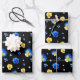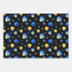 Blau-Gelb-Aquarellfarben Blume Schwarz Geschenkpapier Set