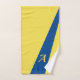 Trendy abstrakte Marineblau und leuchtend gelb gestylte geometrische Farbgebälk Badehandtuch Set personalisiert mit Ihrem Monogramm und Namen.