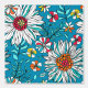 Dies ist eine grafische Komposition, bestehend aus dunklen Blume mit aquamarinen Blütenblättern, gelb-rot und orange-roten Kernen und anderen Blume im Garten und aquamarinen hellen Blätter auf blauem Hintergrund. Sie können die Hintergrundfarbe ändern, indem Sie auf den Button "Personalisieren" klicken und dann auf die Inschrift "Klicken Sie, um weiter anzupassen".