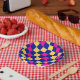 Blau Gelb und Rosa Karo 3 Farben Karomuster Design