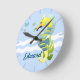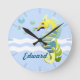 Seepferd in Begrüßungsfarben, die an das Leben im Meer erinnern: blau, weiß, goldgelb und grün.
