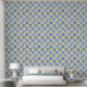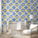 Blau-gelb-Zimmer mit mediterranem Muster Tapete
