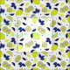 Gelbe und blaue Zitronen, Scheiben und Blätter, Stoffmuster