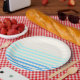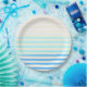 Blau gestreifte Pappteller