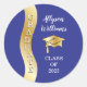 Blau | Gold Graduate Wave Grad Cap Runder Aufkleber