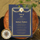Ein goldenes Graduierungspapier und ein abgerundeter Serpentinrahmen mit Goldton und blauem Graduiertenpartydesign, das für High School-, Uni-, Hochschul- oder Berufsschüler personalisiert sein kann. Composite Design von Holiday Hearts Designs (Rechte vorbehalten).