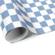 Abstrakte digitale Kunst von blau/grau und weiß Quadraten in einer karierten Formation.