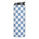 Abstrakte digitale Kunst von blau/grau und weiß Quadraten in einer karierten Formation.
