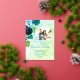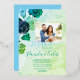 Blau, grün, türkisfarbene Rose Hochzeitssilber Folieneinladung