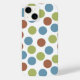 Dieses Gehäuse hat ein geometrisches Design aus blauen, grünen und braunen Punkten.