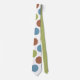 Diese Krawatte hat ein geometrisches Design von blauen, grünen und braunen Punkten.