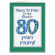 Eine stilvolle 80. Geburtstags-Karte für eine Mutter, mit der Nr. 80 machte von einer handgemalten Papiercollage, im Blau, grün und im Weiß und koordinierte mit der Beschriftung und der Grenze der Karte. Vergessen Sie nicht, dass Sie das Innere dieser 80. Geburtstags-Karte leicht besonders anfertigen können.