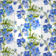 Blumendelphiniums feine Kunstblau, grün auf weißem Stoff. Ideal für Quilting und andere Nähprojekte. Delphinium druckt aus einem Original in Aquarell und Gouache von Sarah Trett.