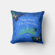 Personalisieren Sie den Namen und die Botschaft auf dieser blauen dekorativen Grenze, Quinceanera werfen Kissen. Blaue und grüne Schmetterlinge Quinceanera-Sake. Vielseitig für königsblaue oder marineblaue Themenfarben. Schmetterlinge und Tiara lassen sich leicht verkleinern und auf Kissen umstellen.