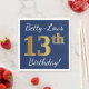 Dieses einfache Papier-Serviettendesign enthält eine Nachricht wie "Betty-Lou’s 13. Geburtstag!", mit dem "13.", das ein Imitat in goldenem Aussehen auf blauem Hintergrund hat. Der Name kann angepasst werden. Es könnte auf einer Geburtstagsfeier für jemanden verwendet werden, der seinen dreizehnten Geburtstag feiert. [~Z0000083]