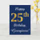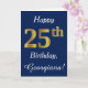 Dieses schlichte Design der Geburtstagskarte zeigt die Meldung "Happy 25 th Birthday", mit dem "25." ein goldfarbenes Imitat. Es hat auch einen personalisierten Namen und einen dunkelblauen Hintergrund. Es könnte jemandem gegeben werden, der seinen fünfundzwanzigsten Geburtstag feiert.