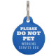 Fett blauer Hund-ID-Tag mit der Meldung "nicht Haustier, Arbeitsdienst Hund" auf der Vorderseite und Platz, um den Namen des Tieres und eine Telefonnummer oder eine benutzerdefinierte Nachricht auf der Rückseite hinzufügen.