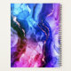 Ein trendiger Blue, Lila und Red-Violet Liquid Ink Design mit personalisiert gelben Monogramm und Jahr in dunkelblau und goldfarben.
