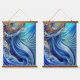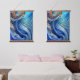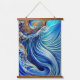 Blau mit Abstrakter Ozeanwelle Wandteppich Mit Holzrahmen