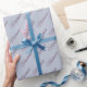 Blau mit Pflaumentext. Geschenkpapier