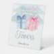 Blau oder Rosa Was denken Sie, Einladung Sockelschild