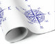 Blau-on-White Coastal Dekor Kompass Rose Muster Geschenkpapier