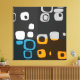 Blau, Orange, Grau Retro Abstrakte Leinwand