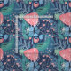 Ein modernes, kühn blaues abstraktes Blumenmuster.