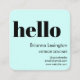 Individuell gestaltbare türkisblaue Visitenkarte mit HELLO Typografie und Namen, Beruf, Website und Social Media Details. Auf der Rückseite befindet sich ein scannbarer QR-Code. Um einen neuen QR-Code für das Design zu generieren, das auf Ihre eigene Website verlinkt, klicken Sie auf "Personalisieren Sie diese Vorlage" Fügen Sie Ihre URL-Adresse oder Social Media-Handle in dem Bereich, der zur Verfügung gestellt wird, und ein QR-Code wird nur für Sie generiert.