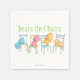 Vier Bären auf vier Stühlen haben Spaß! David Walkers bezaubernde Abbildung aus dem Candlewick Press Titel "Bears on Chairs" zeigt den blauen Calico Bär, den rosa Fuzzy Bär, den gelben Bär und den hellbraunen Floppy Bär, der auf Stühlen spielt. Calico drehe verkehrt herum, während der Gelbe Bär hoch balanciert, und der Floppy Bär versucht ihr Bestes, ihn auf ihren Stuhl zu bringen. Diese vier Bären werden Sie an vier kleine Kinder erinnern, die den Spaß des Kletterns zum ersten Mal entdecken.