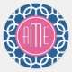 Blau-rosa und blau geometrische Muster Monogramme Runder Aufkleber