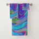Blau, Rosa und Lila Groovy Abstrakt Retro Art Badhandtuch Set
