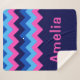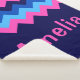 Eine mittelgroße, mit Monogramm Sherpa-Decke mit einem hellen, farbenfrohen Muster aus blauen und rosa Chevronen. Erstellen Sie das passende Geschenk, indem Sie auf die Schaltfläche "personalisiert" klicken, um einen Namen oder eine benutzerdefinierte Nachricht im vorgegebenen Vorlagenfeld hinzuzufügen. Klicken Sie auf den Link "Weitere Anpassung", um den Schriftart, die Textgröße und vieles mehr zu ändern.