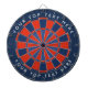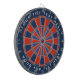 Blau, rotes Dartboard mit benutzerdefiniertem Text.
