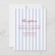 Diese blau und rot gestreifte Hochzeitskarte ist eine stilvolle Art, Ihre Gäste zur Feier nach der Zeremonie zu führen. Mit seinen klassischen blauen Streifen und seinem fett roten Text bietet es alle wichtigen Details für einen Abend mit Cocktails, Dinner und Tanz. Perfekt abgestimmt mit Ihrer gestreiften Hochzeitssuite.