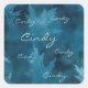 Blau schimmernde Blätter mit wiederholtem Scriptie Quadratischer Aufkleber