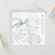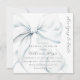 "Sie bindet den Knoten" Thema Brautdusche Einladung mit einem eleganten blauen Bogen Design.