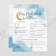 Spaß auf dem Mond Thema Junge Dusche Baby Vorhersagen und Ratschläge Karte mit einer Aquarellkunst des blauen Himmels mit Imitaten goldglänzenden Mond. Die Texte sind bearbeitbar. Perfektes Spiel während der Dusche zu spielen und wird definitiv ein toller Sake sein! Die Karte frage den Gästen vorherzusagen, wie das Baby aussehen würde.